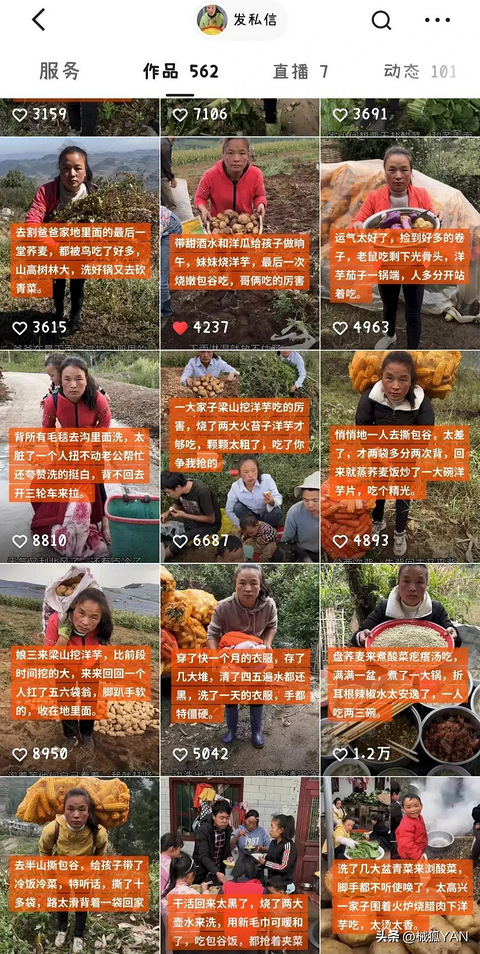 家人们,今天我来割猪草了。随着一个毫无感情的Ai机械声,某某短视频平台id名叫:“小徐”的女人总是会背着满满猪草的背篼正对着镜头。 有时候我真的怀疑真的有这样的家庭吗?某音上面这种大量的苦瓜视频越来越多,大部分的剧情都是一个女人生了好几个孩子,孩子们都脏兮兮的不上学,每天吃土豆渡日,假的?这些孩子难道不上学?真的?这也太贫困了吧,而且这种家庭还有一个共同的特点,家里有个无所事事的老公,每天不是在