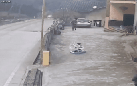 妹妹滑向马路,哥哥见状一把拉住将妹妹从死神手中抢回