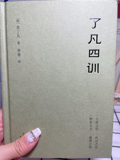 书名:《了凡四训》作者:袁了凡(明)译文:费勇出版社:陕西新华出版传媒集团、三秦出版社这是一本曾国藩要求子侄们读三百遍的“家书”,被胡适奉为中国思想史上的重要著作,也让“经营之圣”稻盛和夫从中获取众多人生感悟。这是一本改命奇书,堪称明代“成功学”的思想巨作——《了凡四训》。明代思想家袁了凡通过这些留给子孙后代的家训向我们显示了中国人信仰体系里的另一个层面:透过自我修行来创建良好的生活,而这本书的价