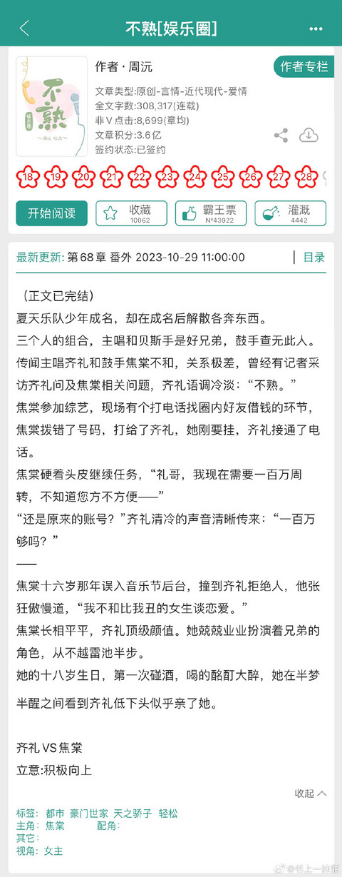 周沅的《不熟》完结了!!!娱乐圈音乐战队那些嘴硬拉扯的双向暗恋,久别重逢破镜重圆文 这个作者之前的娱乐圈文《入戏》和《成名》口碑和收藏都还挺好的