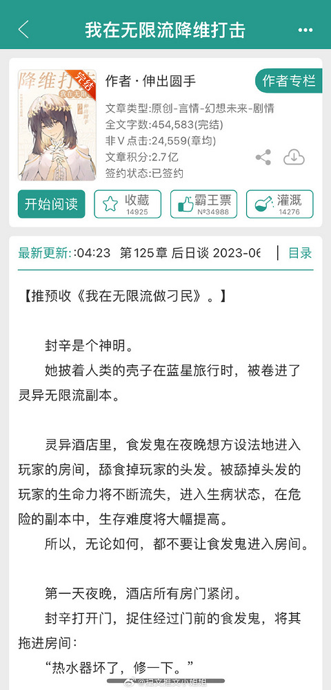 1.《男人影响我练剑》作者:猫猫调查员 2.《在离婚的边缘疯狂试探》作者:丧丧又浪浪 3.《为夫曾是龙傲天》作者:墨书白 4.《揽芳华》作者:乔家小桥 5.《管管穿书,救救男主!》作者:叫我苏三少 6.《悍夫》作者:咬春饼 7.《草莓印》作者:不止是颗菜 8.《亡国后我嫁给了泥腿子》作者:匹萨娘子 9.《试婚男女》作者:墨书白