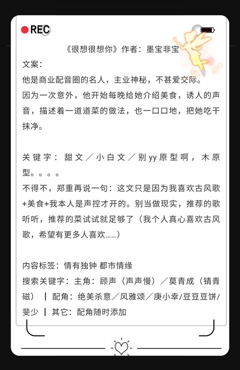 冬季小暖文先给大家介绍偶最喜欢的两位甜心大大。噔噔噔,她们就是墨宝非宝和竹已,每次心情不好,看到她们的小说都会有治愈的感觉。本文给我的感觉大概就是充满了人间烟火气息,但是又少了生活中的各种世俗,从一瞬的惊艳,再到后来的细水流长,看到最后,还是会有一种,明明没有什么轰轰烈烈,但是却总是意犹未尽的感觉,真的强烈推荐。 苏撩甜,台球竞技,一见钟情,SC,HE元气满满纯善可爱励志女主VS话少会撩超强战斗力