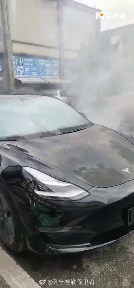 燃烧的先兆?被白雾环绕着的特斯拉3