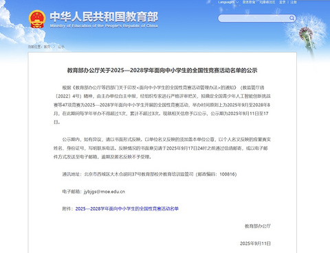 最新《2025-2028学年面向中小学的全国性竞赛活动名单》