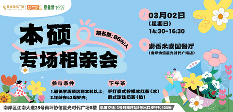3月本硕专场相亲会:3月2日周日下午两点半,相约南坪协信泰香米