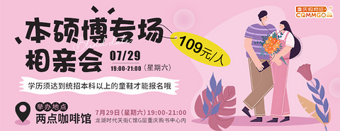 时光如飞刀刀刀催人老 ▼ 不过只要你现在鼓起勇气一切都来得及爱得深、爱得早不如爱得刚刚好 ▼ 07/04 相约时代天街C馆两点咖啡给爱情加个急,只为遇见你 主题:微熟专场相亲会举办时间:07月04日(星期四)19:20-21:00 举办地点:两点咖啡馆(渝中区大坪正街龙湖时代天街C馆G层重庆购书中心内,优衣库楼下) 轨道交通:1号线石油路站可直达 咨询电话:18996353512 (工作日9:0