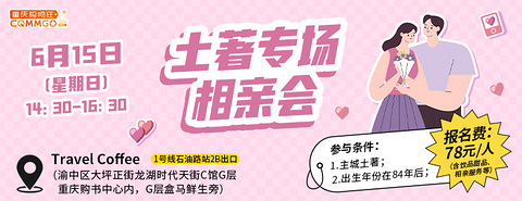 有人说异地恋是世界上最难谈的恋爱因为大多时候是两个人两部手机+一段遥不可及的距离可想而知这样的恋爱修成正果的机会有好渺茫 ▼ 所以我们的“本地人专场”相亲会来咯相同地域的成长背景相同地域的婚恋风俗相同地域的饮食习惯都将提升成功率拉近我们彼此之间的距离 ▼ 06/15 主城专场相亲会来咯欢迎主城九区的同学报名如果爱情有距离,我希望是1000米 主办单位:重庆购物狂 举办时间:06月15日(星期日)