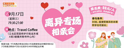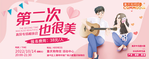 今年4月、6月、7月我们举办了4场离异+熟龄专场获得了很多同学的夸赞所以,这次离异专场又来咯 ▼这一次我们将会在购物狂办公室内活动中心举办更加私密、沟通会更顺畅哦 ▼离异的同学们:这一次,你不是从头开始,而是从经验开始。因为:第二次也很美!!! ■ 深耕婚恋行业十年 ■ 数以万计成功案例 ■ 脱单率高 主办单位:重庆购物狂 举办时间:10月28日(星期五) 20:00-21:30 举办地点