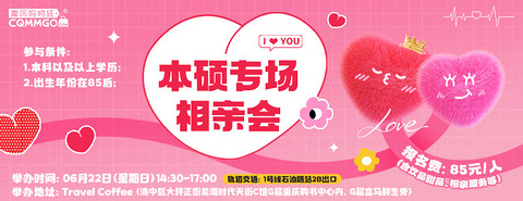 今晚离异专场可接受男女嘉宾现场报名有空的同学来现场报名吧 —————— 在这个孤独的星球上你我皆是亿万分之一你是否渴望一场妙不可言的遇见? ▼ 一次推心置腹的相知就像寂静长夜里的两颗星 彼此照亮 ▼ 期待一场“第二春”的重启吗?(离异专场)等你赴约 主办单位:重庆购物狂 举办时间:02月28日(星期五)19:20-21:00 举办地点:Travel Coffee(江北区观音桥东环路远东城A馆3楼