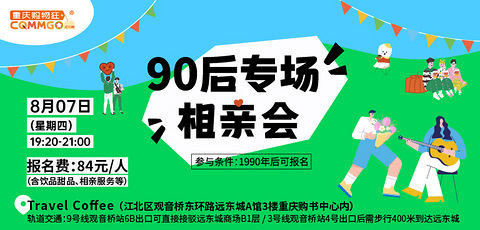 龄好像中催着我们往前走不知不觉中90后已经过半迈入而立之年了 ▼ 今年2025年马上又过了3/5了哦还是得抓紧时间脱单 ▼ 08/07 相约观音桥远东城Travel Coffee一场90后精准交友在等你 主办单位:重庆购物狂 举办时间:08月07日(星期四)19:20-21:00举办地点:Travel Coffee(江北区观音桥东环路远东城A馆3楼重庆购书中心内) 轨道交通:9号线观音桥站6B