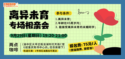 9月离异未育专场相亲会:怦然再心动,欢迎离异未育的同学报名哦