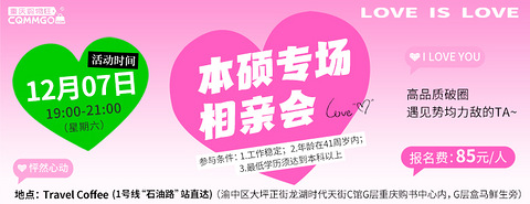 重要通知:本周六的本硕专场相亲会可接受男士现场报名符合要求的可直接来 —————————— 有这么一群人他们也许是大家眼中的“三好学生”可以说是“上知天文地理” 他们有着令人艳羡的高学历他们聪明、博学、睿智稳定的工作、可观的收入...一定也是相亲活动中的佼佼者 ▼ 而提起对另一半的要求大家除开“看眼缘”“看感觉”之外还有些同学“希望ta是高学历”所以高学历也是高颜值 ▼ 12.07 相约大坪时代