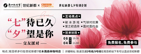 七夕节就是下周四啦你还是一个人吗? ▼ 想不想邂逅一个TA,圆满过七夕?快来报名七夕相亲会专场 直接奔现一起过情人节一起享受这份“甜蜜暴击”让爱“甜”满你的心 ▼ 七月初七,七夕情人节当天一起相约观音桥世纪新都 C Q M M G O 2 0 2 2' 第123届 重庆购物狂相亲会THE 123th" CQMMGO blind date meeting▼TIME:08月04日(星期四) 19:3