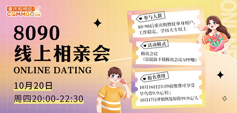 公布名单啦请大家在周四10月20日晚间19:50开启加入会议路径:打开腾讯会议-首页-加入会议-输入会议号-再输入会议密码(会议号和密码已经发到各位的手机上啦)请对房间密码严格报名,如果发生密码外泄,将取消活动资格等待管理员审核后方可进群哦 年关将至,又到一年催婚季......你我虽然反感参与七大姑八大姨安排的相亲但是对父母满满的爱无计可施不用担心,购物狂相亲为你支招新版“线上相亲会”来咯 本次线