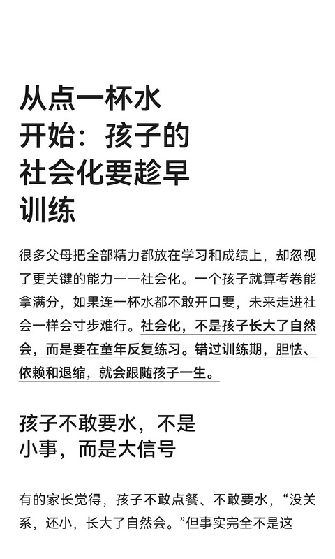 父母侵入式控制(替做/即刻介入)会让孩子焦虑、依赖与注意力受损 现实场景:你可能在无意中侵入的 5 个瞬间 1.孩子穿衣服卡住,你立刻接手把衣服穿好(剥夺练习) 2.孩子堆积木倒塌,你马上帮他重搭(代替修错的学习机会) 3.孩子正专注玩,你不停发问打断(打断发起—维持—完成循环) 4.他尝试系鞋带,你示范一次就接管(少了重复尝试的“练习量”) 5.孩子遇到社交冲突你立刻替他说话或把对方拉开(没教他