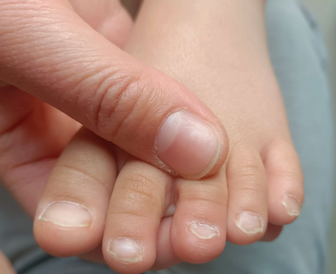 以前没注意,今天给她剪指甲才发现,她的两只脚,左脚和右脚各有两个指甲有这种情况。 孩子的鞋子、袜子都不小,应该不是鞋子的问题,她妈妈说是不是缺什么微量元素,想过两天去查查。 小女儿现在2岁7个月,吃饭什么的都挺好,也不挑食。现在奶粉一天喝300ml,水果一天两种,蔬菜她也吃。 万能的购物狂,有人知道这是怎么回事吗?其他都正常,就感觉她这脚指甲怪怪的