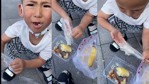 6月5日,陕西西安,女子带孩子在西安火车站准备回老家,不料过安检时,已经剥好的榴莲不让带上火车,扔了觉得可惜,想到孩子爱吃榴莲,于是妈妈让孩子把这个榴莲吃掉,到最后,孩子好不容易才吃了半个,剩下半个实在吃不下去了。