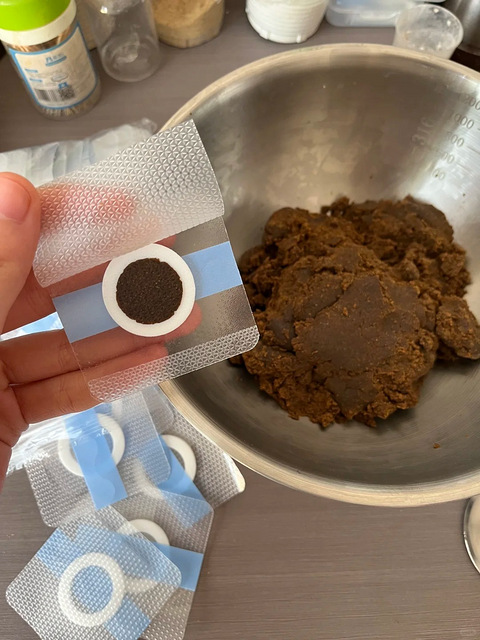 一.材料准备1. 基础药材-可以到药店或者医院抓药,直接要求店家打粉。我是从药店买回来自己打粉,不容易掺假。-基础配方是白术、茯苓、鸡内金、炒山楂等,配比放在最后一张。-另外准备生姜汁或黄酒,以及蜂蜜,方便调制成糊状用2. 购买空白贴,中间带海绵圈这种。
