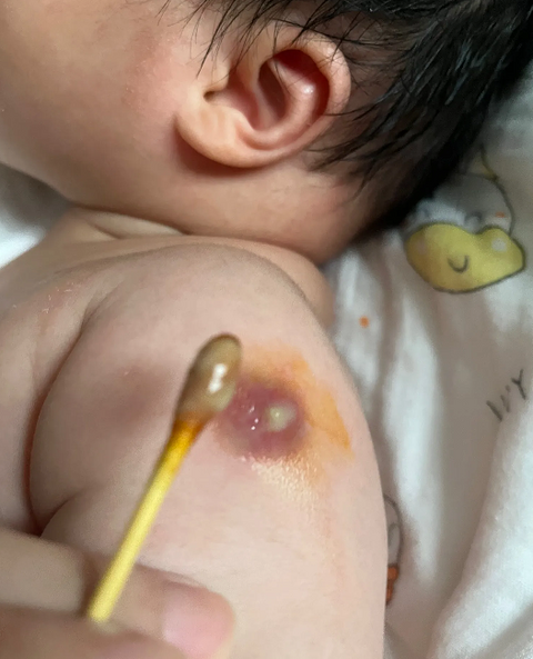 宝宝刚过百天,今天去给她洗澡,洗前只是一个小白点,洗好后小白点破了开始化脓,在手机上搜的医生说让挤出来,一包棉签都用完了才挤干净,看着都心疼,挤到最后都是清水状的血水,现在结痂了,不知道有没有事啊