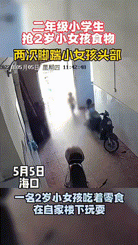 二年级男孩抢2岁小女孩食物,连踹头部两脚,这孩子长大怎么得了
