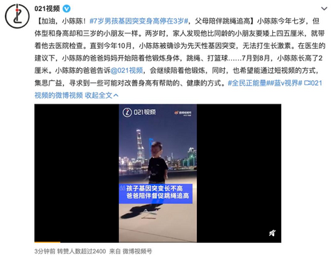 #7岁男孩基因突变身高停在3岁# 日前上了热搜,7岁小陈陈的身高,让父母心急如焚。因为基因突变,所以无法长高也没有其他有效的医学方法,只能通过坚持运动帮助长高。孩子的身高是父母衡量其发育健康与否的标准之一。所以,志玲提醒各位家长,除去基因因素,如果您发现自己的孩子比其他相同年龄和性别的孩子矮得多,那么你可能就要考虑是不是“身材矮小”这一问题了。