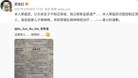 来自广州《羊城晚报》12月29号的电子刊。在《道歉声明》里,这位父亲写道: “本人郭xx试图控制正常人,将其禁锢在精神病医院治疗。 侵犯了郭xx的健康权、名誉权、人格尊严权、人身自由权、婚姻自主权,法院判决本人公开道歉。 特写道歉声明向郭xx表示道歉。”这短短百余字里,藏着多么窒息的人生。 一名男孩,18岁刚成年,被撵出家门。 因为他父亲想要独占家族全部遗产,儿子的存在,动了自己的奶酪。 男孩离开