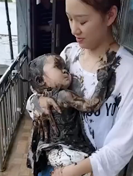 四川一孩子掉进泥潭,妈妈抱在身上安慰爸爸大笑:洗洗还能要吗?