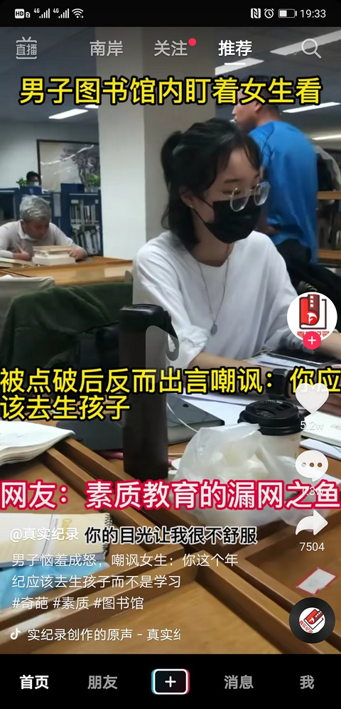 事情来龙去脉应该是在图书馆,男子一直盯着这个女生看,女生忍无可忍说了一句:你的目光让我很难受,估计男的很难堪吧,就嘲讽女生,应该回去生孩子而不是在图书馆里面学习………生孩子什么时候成了骂人的话了???摆明看不起我们这些生了孩子的宝妈,太气人了 读书读傻了吧,斯文败类