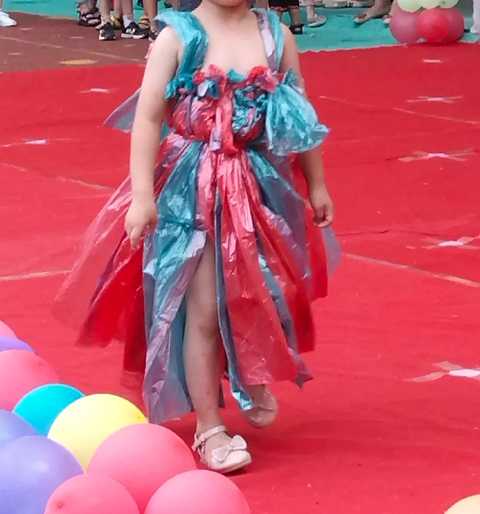 学校的六一儿童表演走秀,学校让家长自己动手做服装,结果这些家长一个比一个厉害,我的是儿子,我就用袋子随便弄了一下。要是女儿的话,叫我弄,估计我做不出来