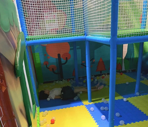 游乐场的孩子上蹿下跳,爸爸妈妈们全部躺平、放空、耍手机,快乐出逃