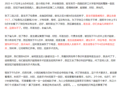 疫情之下,孩子生病家长最痛苦,看到个杭州的妈妈发了篇帖子,娃儿突然肚子痛,还伴随发烧,辗转3个医院奔波12小时,小孩未得救治,谁之过?