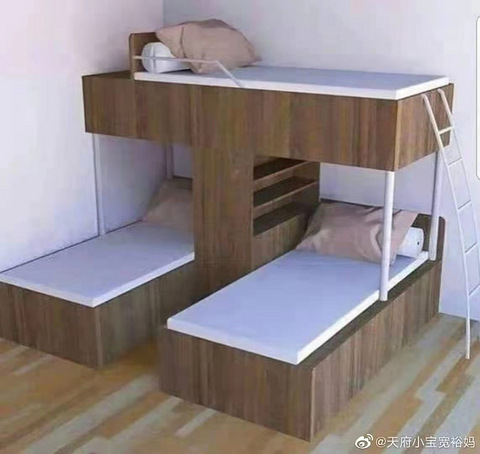传说中的三胎床,房子不大,就靠这个来装娃了