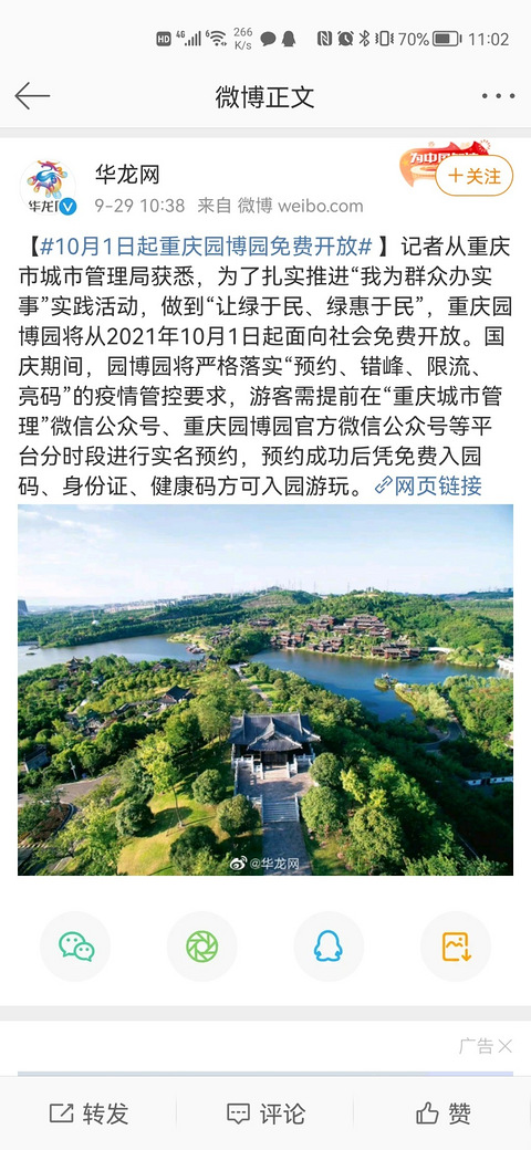 好消息,园博园10月1日起免费开放