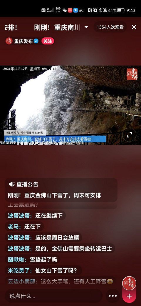 重庆人的快乐就是看到点点雪花都激动的,哈哈哈金佛山下雪了周末安排娃儿看雪去呀