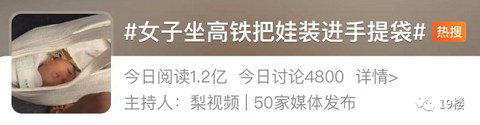 两个月的娃,八小时高铁,女子把娃装进手提袋引起关注