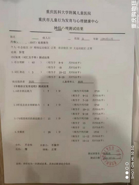 首先我就是一个特别焦虑的麻麻,前几天看了隔壁妈妈说2岁4个月诊断为自闭症,发现情况和我们类似,今天我们也去儿童医院儿保后做了评估,首先儿保时医生单子就写了不合作,翻看上一次,还写了极不合作。 1岁半,会说的词语都还是个位数,两天前才学会喊妈妈,1年前都会无意识喊爸爸了,现在也比较无意识。 喜欢小狗,但是看到猫咪也会喊狗狗。并且是闭着嘴巴喊狗狗。会递东西,但是经过今天在医院检测发现,是通过手势发现