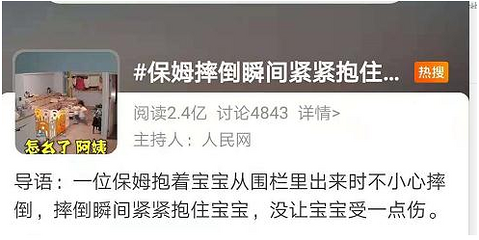 热搜保姆摔倒瞬间紧紧抱住孩子,有人质疑:这不是应该的嘛