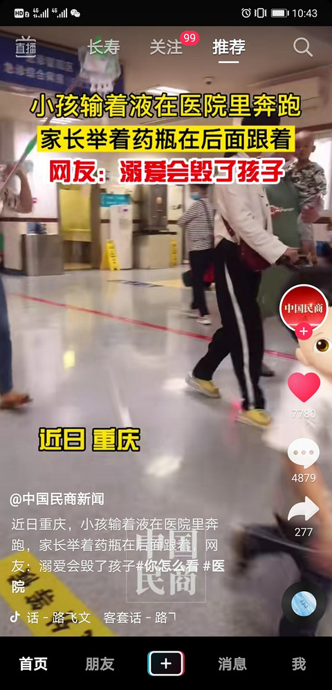 小孩输着液在医院奔跑,家长在后面拿着输液瓶跟着…太溺爱