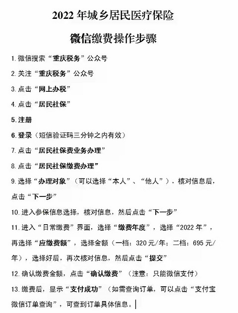 重庆税务现在能交2022重庆居民医保了,还没有缴费的,可以去了