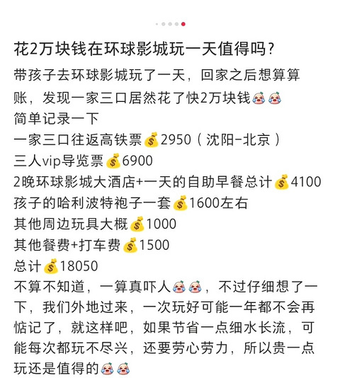 去环球影城玩一天花了快两万,大家觉得值得吗?反正我是舍不得的