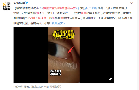 家有宠物的多洗手!男童眼里捉出6条蠕动活虫