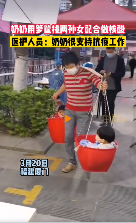 厦门6旬奶奶用箩筐挑俩孙女做核酸:谁来带孩子让年轻人焦虑