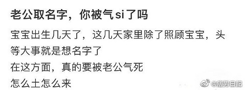 现在给孩子取名字很难吗?感觉大家都是偶像剧模式,不是欣就是鑫、馨、睿。看到个两口子为了娃儿的名字想破头,聊天对话之搞笑,现在没有点文化取名都难……