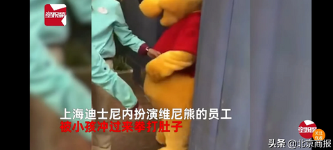 近日,上海。上海迪士尼内扮演维尼熊的员工,被小孩冲过来拳打独肚子,小朋友被及时制止,工作人员立刻带回到了幕后,随后工作人员上前和小朋友家属进行沟通,在此过程中孩子家长态度强硬,双方一直僵持不下孩子家属强调:孩子已经道歉了,还想怎么样。