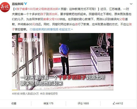 孩子偷拿100元被父母揪进派出所,是不是有点过了
