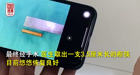 父母责任当然大了,两岁宝宝不能拿着细长的棍子走路玩耍 9月24日,陕西西安,2岁女童悠悠玩耍时不慎摔倒,手中筷子插入鼻腔被紧急送医。孩子妈妈称,孩子吃完饭拿着筷子就出去了,在门口的时候摔了一跤。医生检查发现,筷子在悠悠右鼻腔和眼眶内,已压迫眼球,急需手术。最终经手术,医生取出一支3.5厘米长的断筷,目前悠悠恢复良好。