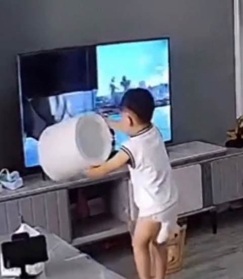 入戏太深!奥特曼被欺负,2岁宝宝砸电视报仇