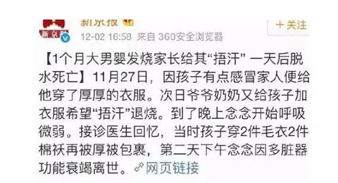 对于宝宝发烧,家长们真的不能胡乱去退烧。一旦用错方法,遭罪的是孩子,有的孩子甚至因此失去了生命。“1月大男宝因捂汗退烧,一天后脱水死亡。” 孕事