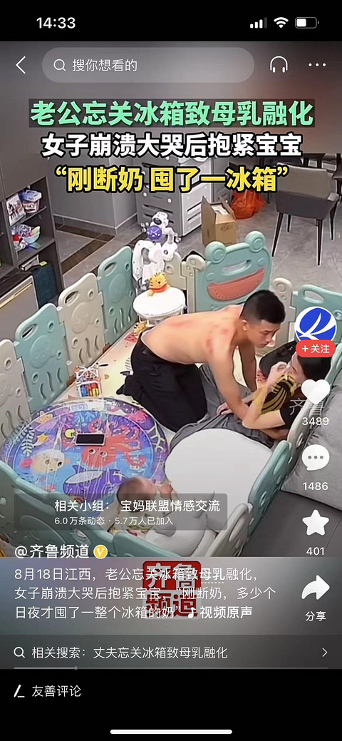 8月18日江西,老公忘关冰箱致母乳融化,女子崩溃大哭后抱紧宝宝,“刚断奶,多少个日夜才囤了一整个冰箱的奶”确实令人生气,这么低级的错误,那不光是孩子的口粮,也是妈妈辛苦挤出来的。