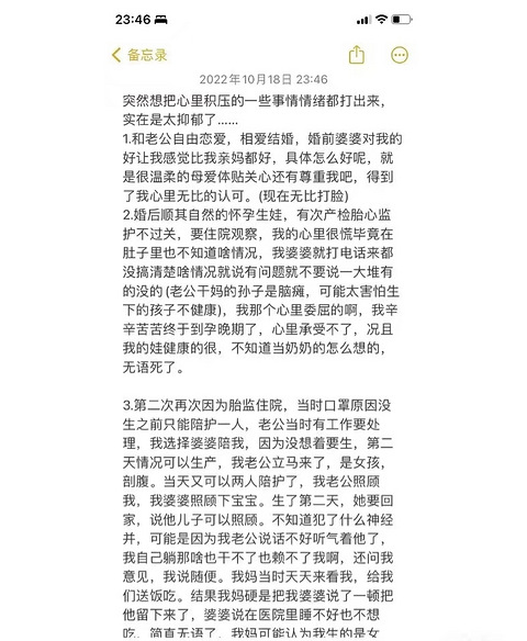 “唉…我那婆婆一言难尽!反正无论我做什么都不会讨她欢心,我也不知道为什么,反正她一直都很讨厌我。”自从结婚后,每次给婆婆买礼物,比伺候亲妈还亲,婆婆一点都不领情,我对她越好,她对我意见越大。”这回婆婆过生日我想说带娃辛苦了,多花点钱给她买了个生日礼物,也不安逸我得很......我都不知道该怎么办了 把自己经历的事情记录下来,长篇大论后,心里也释怀了一点,至少我老公是爱我的,还有一个很可爱的宝贝。婚